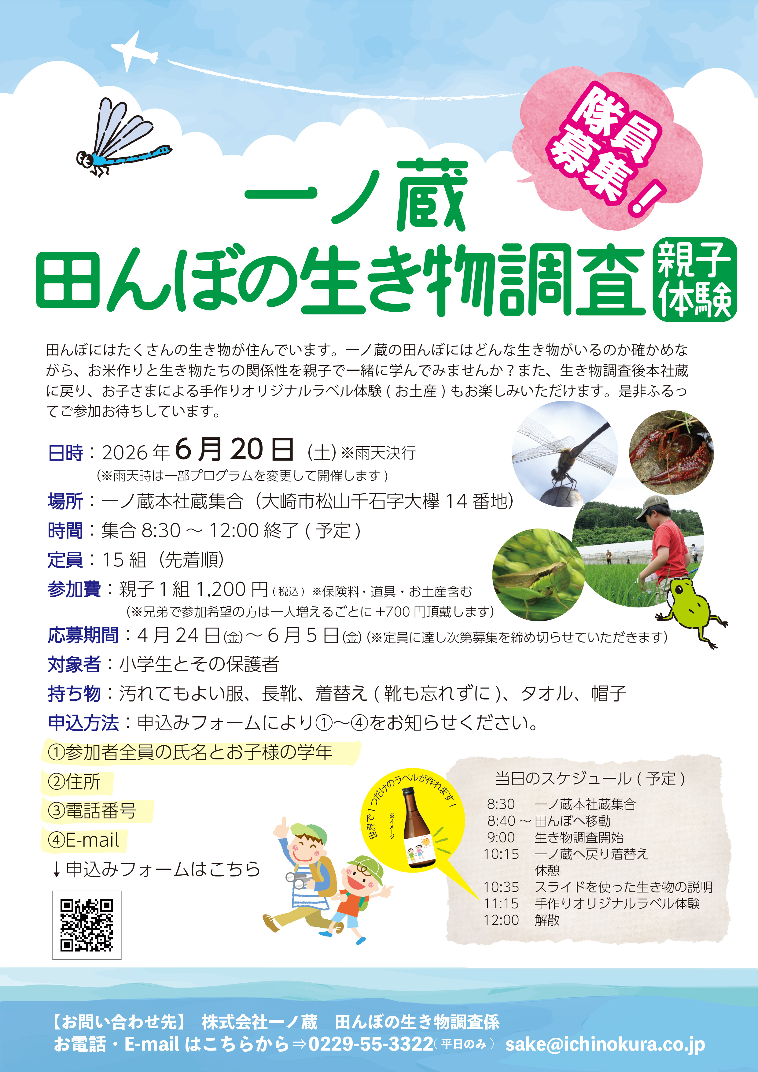 【お問い合わせ先】 株式会社一ノ蔵 田んぼの生き物調査係