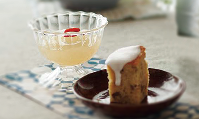 5,熱いうちにひめぜん梅を適量染み込ませ、冷めたら粉砂糖大さじ5に、ひめぜん梅小さじ1を混ぜたものをトロリとかけて出来上がり。