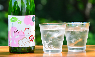 グラスに氷を入れ、ひめぜん梅120mlを注いで、炭酸水80mlを加えて軽くかき混ぜるだけ。爽やかな和カクテルの出来上がりです。