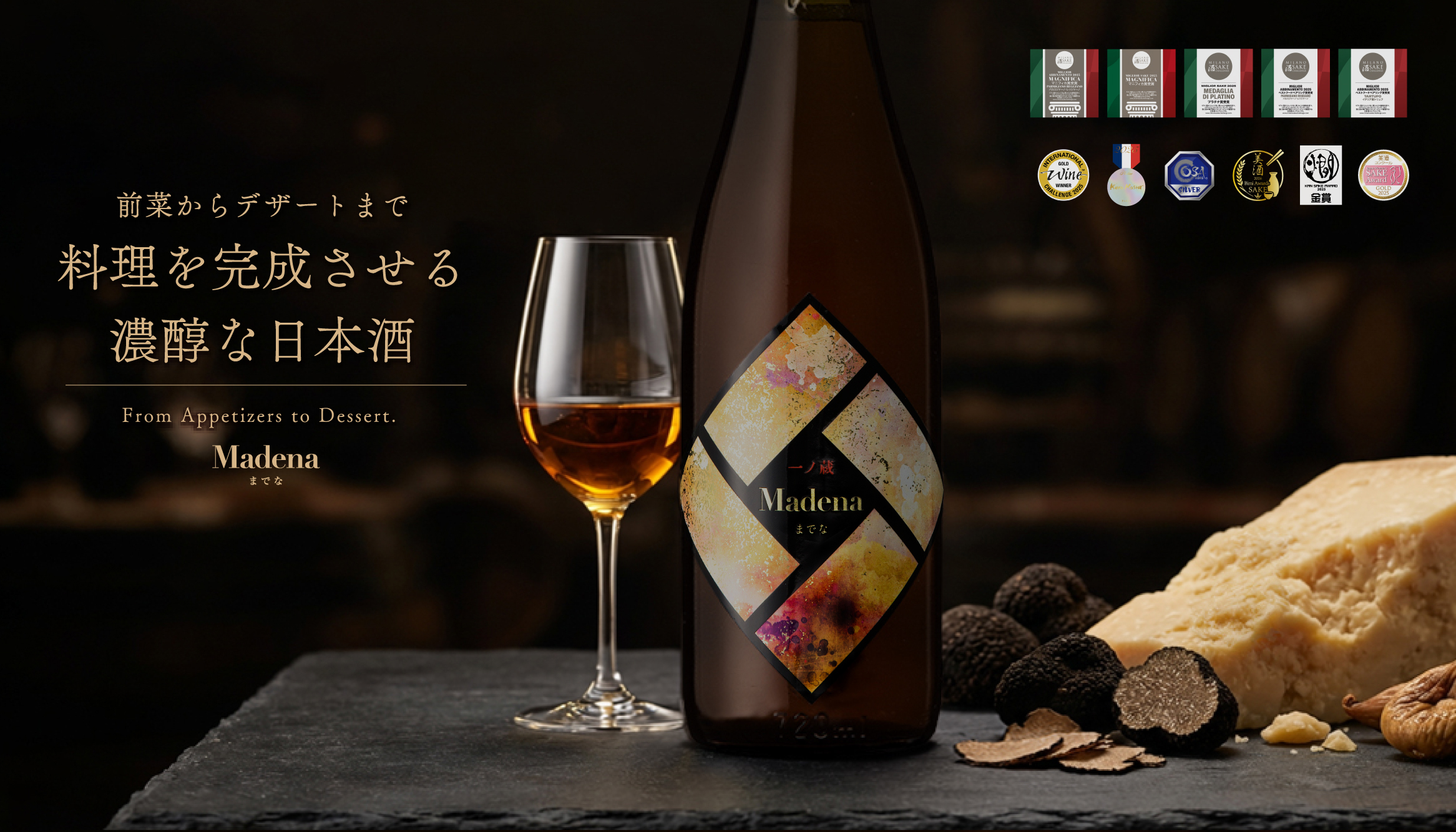 世界三大酒精強化ワイン(シェリー、ポートワイン、マデイラワイン)の製法(酒精強化・加温熟成)を日本酒に応用した全く新しい香味の一ノ蔵オンリーワンのお酒です。「Madena」の製造には、一ノ蔵がこれまで培ってきた「新しい日本酒造りのための技術」も生かされています。