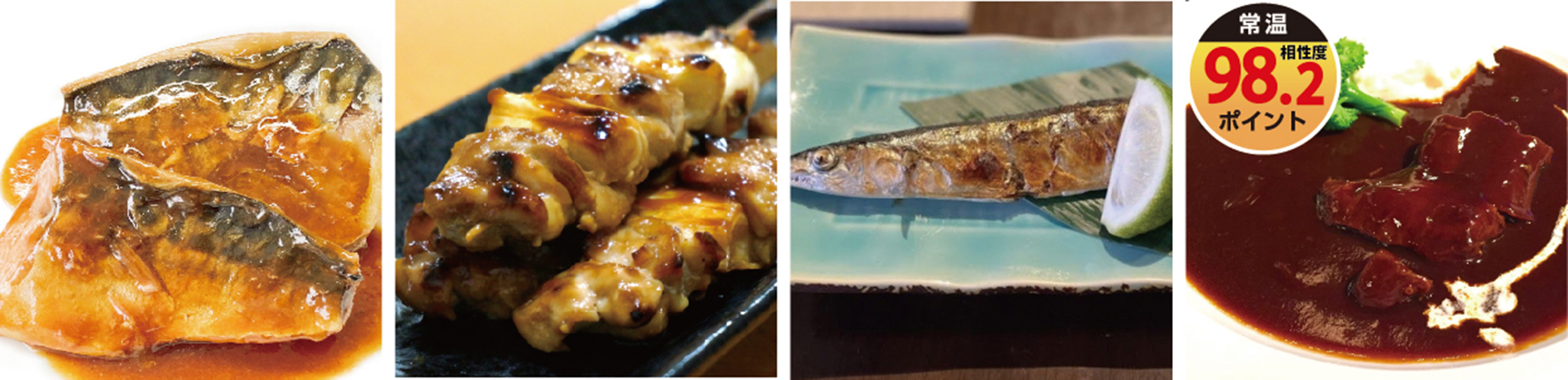 鯖の味噌煮、焼き鳥、サンマの塩焼き、ビーフシチュー