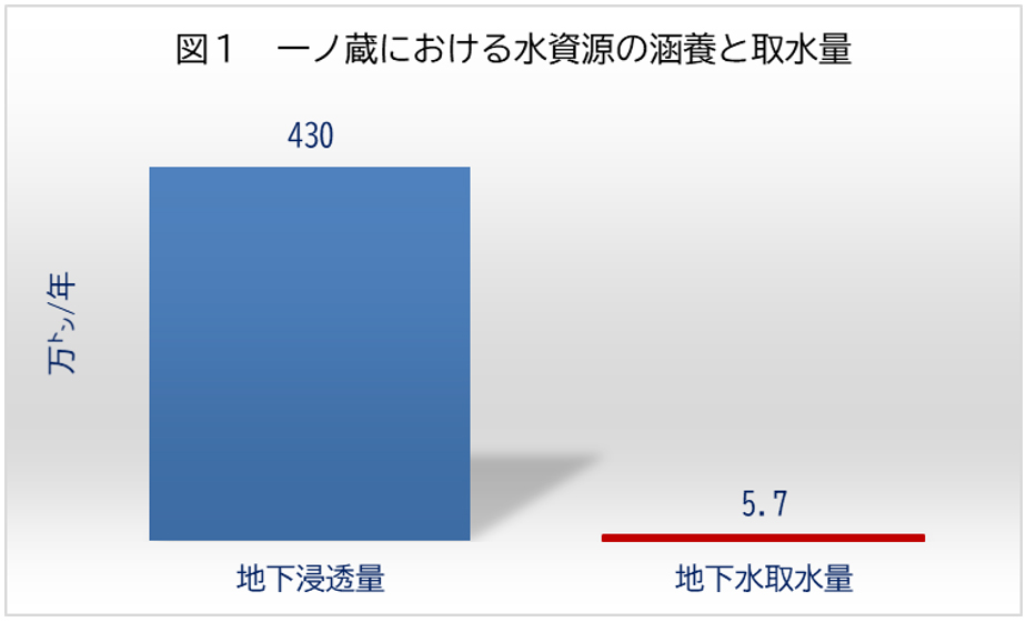 一ノ蔵も、敷地内に設けた井戸から地下水を汲み上げ酒造りなどに使っています。一方、原料米を生産する水田には地下水を涵養※する機能があると言われています。一ノ蔵が1年間に使用する原料米の数量をもとに、水田から地下へ浸透する水の量を計算してみました。
