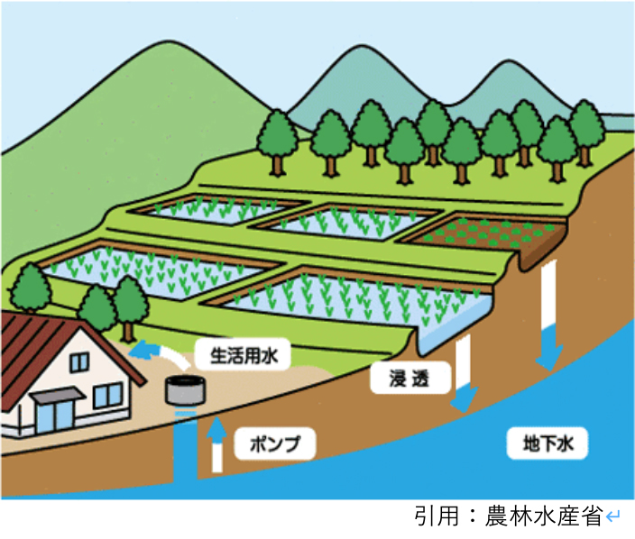 ※雨水など地表にある水が地下に浸透して帯水層に供給されること