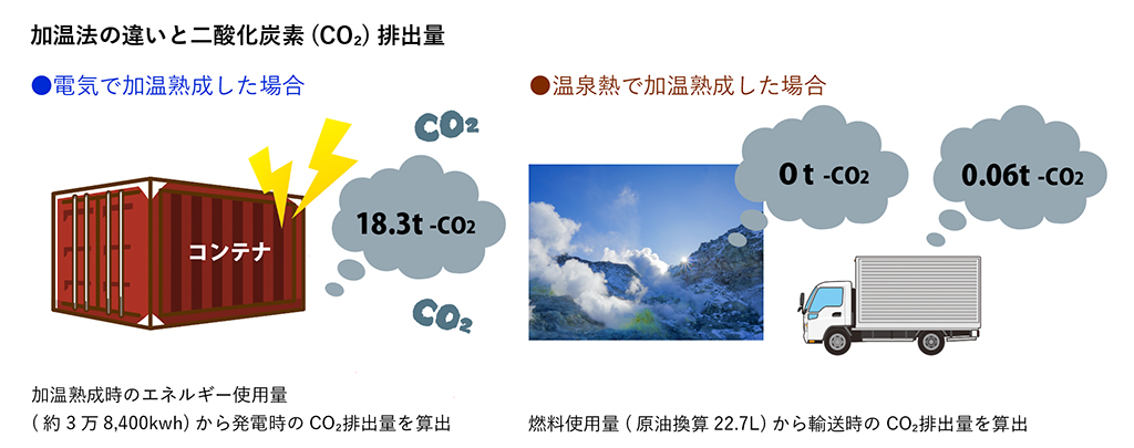 注)電気で温める温蔵庫を使って加温熟成した場合と比べ、どれくらい二酸化炭素排出量を削減しているか計算してみました。